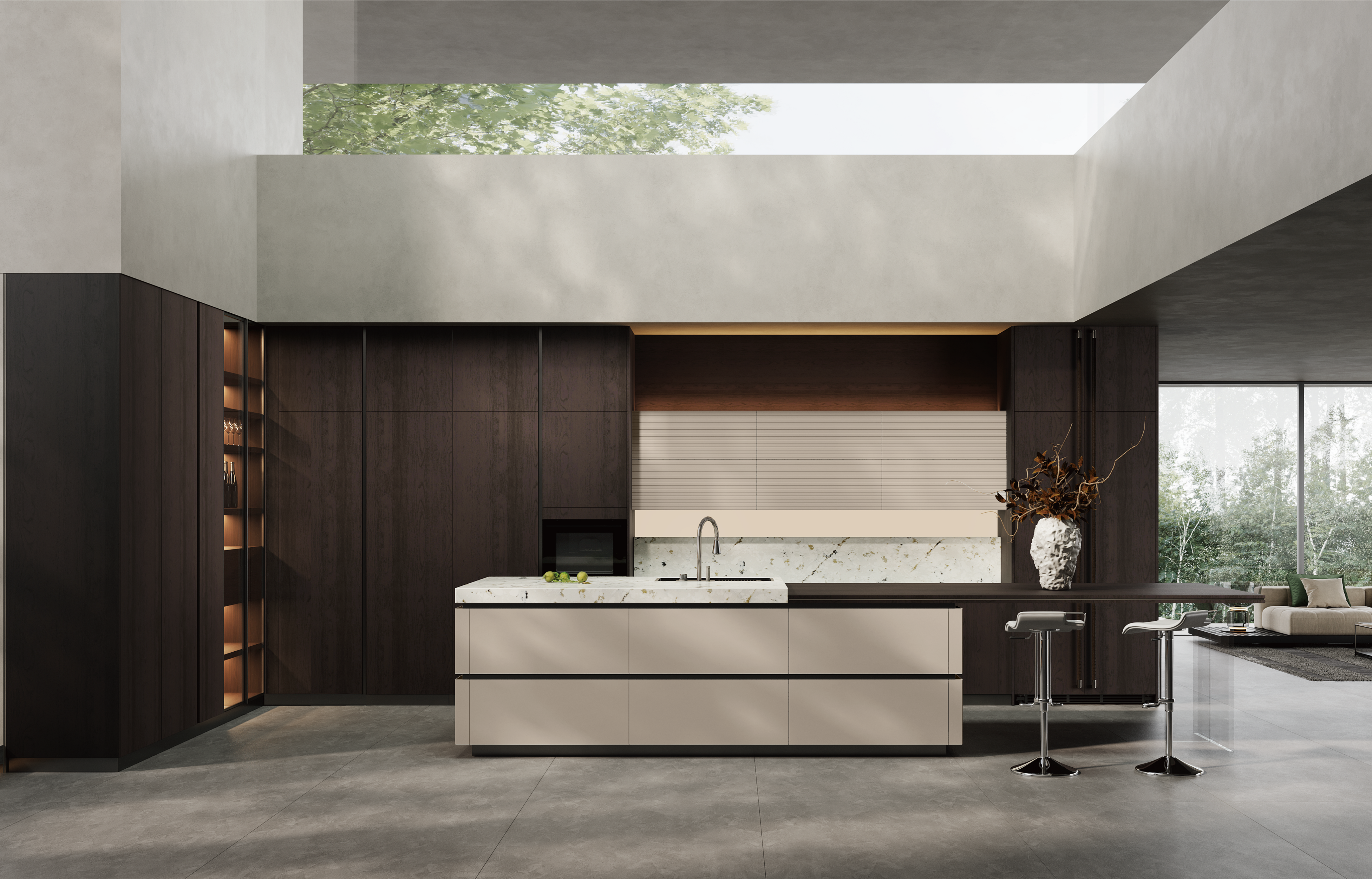 通过PG厨柜量体裁柜,定制出适合主厨下厨的烹饪区和洗涤区的舒适高度。